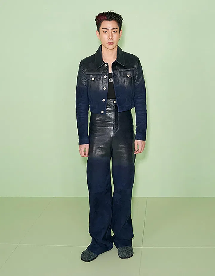 泰星Off Jumpol穿着短版皮衣及高腰皮裤出席Loewe秋冬秀,在现场还和泰国女星Baifern一起与Loewe创意总监Jonathan Anderson合影。