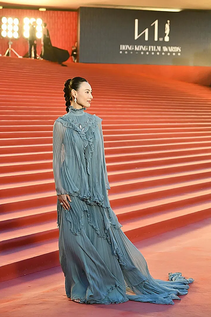 郑秀文今年凭《流水落花》夺得最佳女主角——而她从2001年起十度提名“金像奖最佳女主角”,这次终于获得影后封号,并由其多年来的CP搭档刘德华为其颁奖(领奖时穿着尚未面市的H&M及Mugler合作系列)。当天的红毯造型,她穿着Valentino黑色系肩带露背黑色礼服。早前本地女星林慧玲出席红星大奖2023,也选穿了一款露出侧腰及后背的简约性感黑礼服。