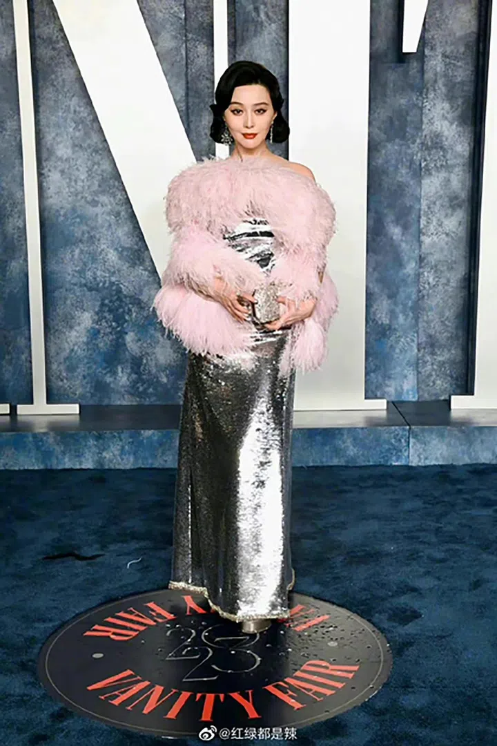 这身亮相奥斯卡派对的羽饰银色礼服,来自Giambattista Valli 2022秋冬高级定制系列。很巧的是,杨紫琼去年拍摄杂志大片时也穿着了同款礼服,相比杨紫琼的温柔淡妆,范冰冰以标志红唇亮相,令同套服装散发全然不同的时尚气质。