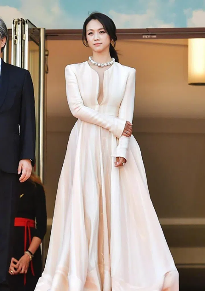 今年很可惜因戛纳评奖规则,《分手的决心》(Decision To Leave)导演朴赞郁(Park Chan-wook)获得最佳导演,因此该片无法同时获得其他奖项,从而让汤唯无缘最佳女演员。不过汤唯出席戛纳身穿的这款深V香槟色Fendi高级定制礼服给人留下深刻印象,搭配Chopard的珍珠项链,光泽熠熠,优雅呼应。
