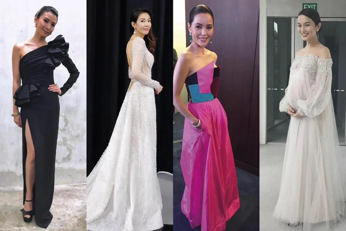 白薇秀虽即将临盆(原本还预录了得奖感言)还挺着大肚出席《红星大奖》,身上的露肩连衣裙由本地礼服品牌Jessica Cindy量身定制,若影若现的薄纱设计让她散发仙女气质,容光焕发。
