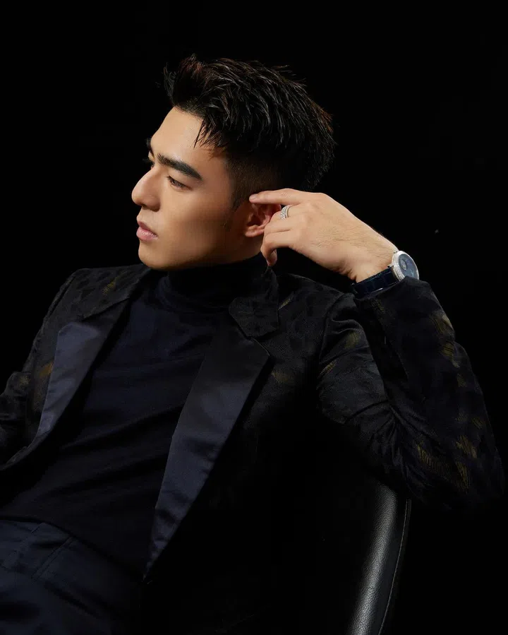 陳昊森穿着Ermenegildo Zegna图腾缎面西装内搭高领毛衣,并搭配Piaget全球仅八枚的超薄陀飞轮腕表出战金马,气质超凡。