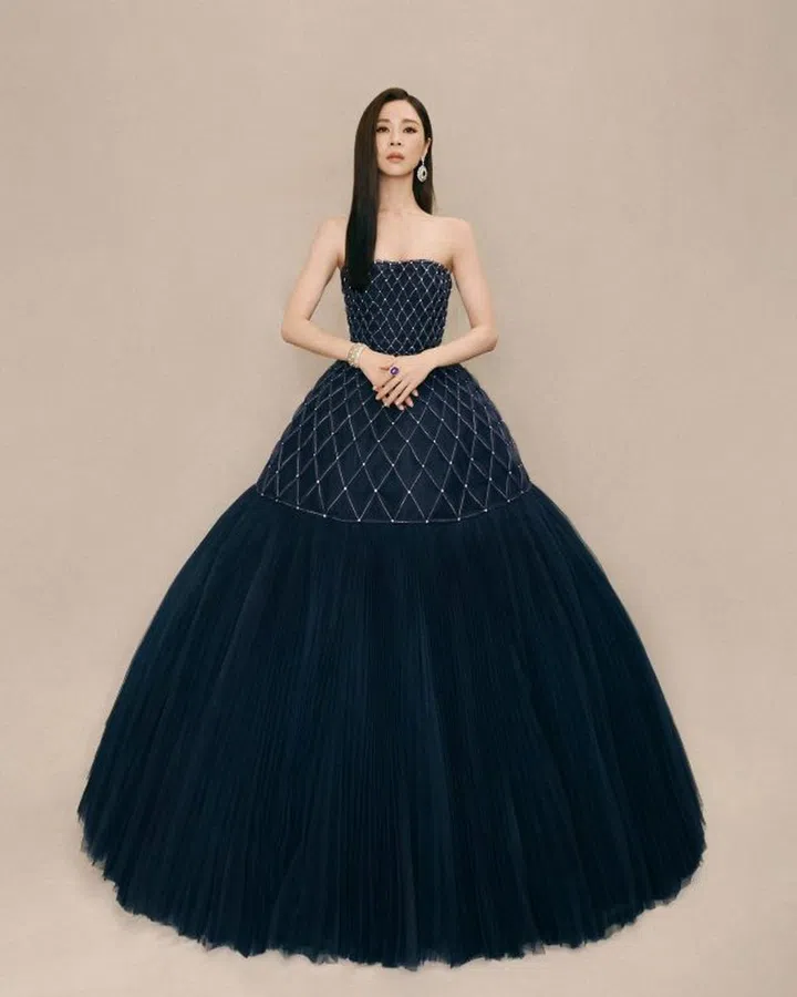 担任金马主持人的谢盈萱,穿着菱格元素装饰的Nicole + Felicia礼服搭配Buccellati珠宝,造型隆重唯美极具古典气质,让可爱的她瞬间化作高贵女神。