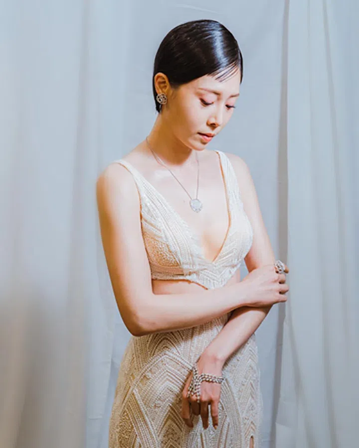 2020年以《返校》演出获颁第22届台北电影奖最佳女主角奖项的王净 ,本次出席电影节穿着Ralph Lauren单肩亮片礼服,并搭配Chaumet珠宝及René Caovilla高跟鞋,造型华贵又保持着清爽、简约。
