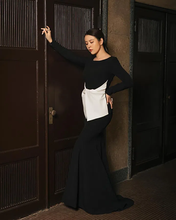 因出演《华灯初上》人气大增的刘品言,穿着Safiyaa黑白礼服凸显她的身材曲线,并搭配Jimmy Choo高跟鞋及Tasaki珠宝,造型端庄又有记忆度。