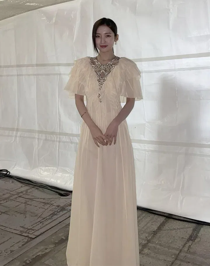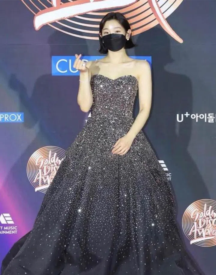 担任《2020年金唱片大奖》主持人的朴素丹,选择以Marchesa平口渐层水钻礼服亮相红毯,穿出星空般的璀璨奢华。