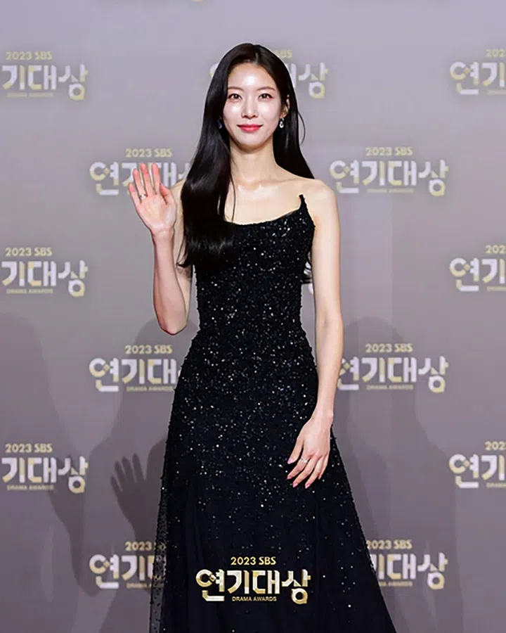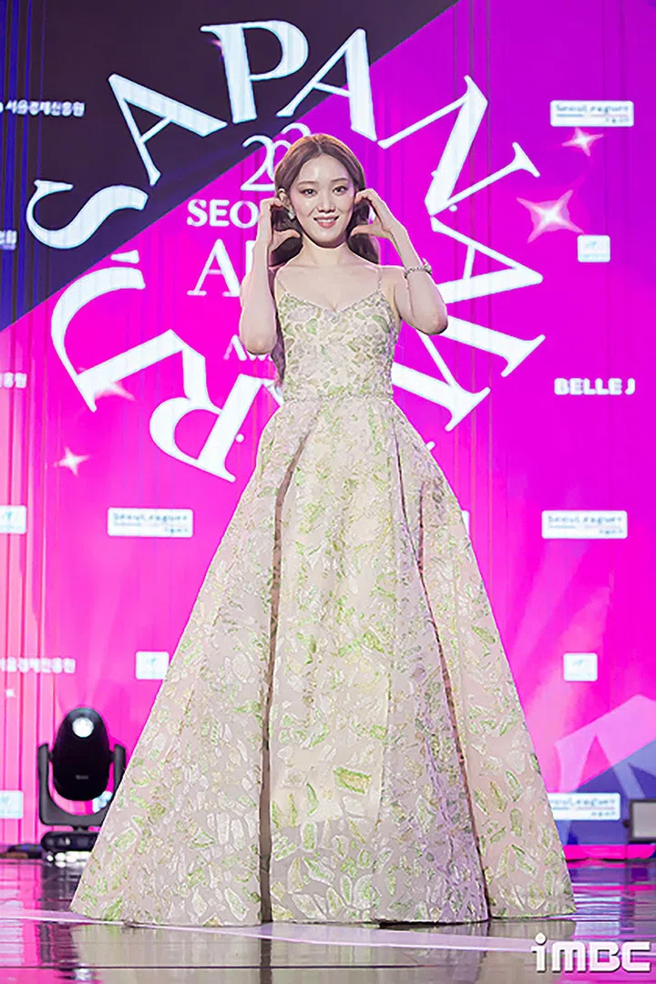 2023年12月29日,韩国SBS电视台主办的“SBS演技大赏”在首尔举行了颁奖典礼。李圣经穿着一袭白色Savannah Miller婚纱礼服,并搭配Mamiani珠宝及Jimmy Choo水晶猫跟鞋亮相。
