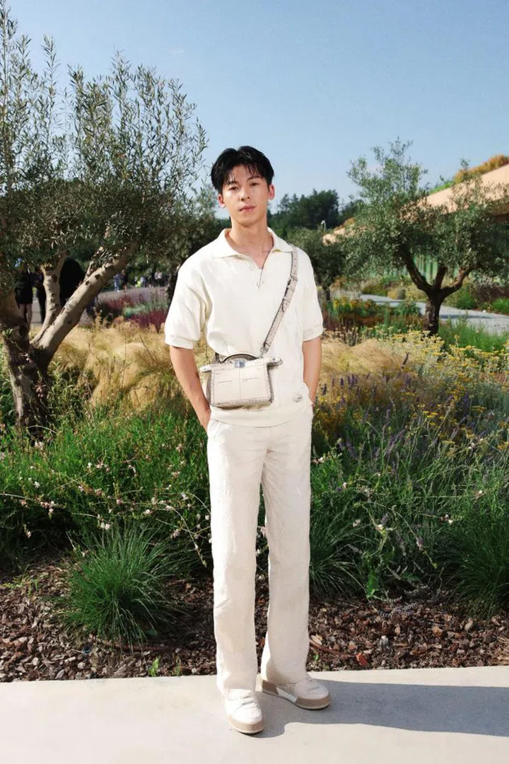 许光汉作为Fendi大中华区代言人,从机场以Polo Shirt+长裤及品牌背包的黑白造型踏上前往佛罗伦萨的时装周旅程。观秀时则穿着米白色服饰,搭配Peekaboo ISeeU手袋,以阳光“少年感”风格演绎他心中对Fendi的“精致美”印象。