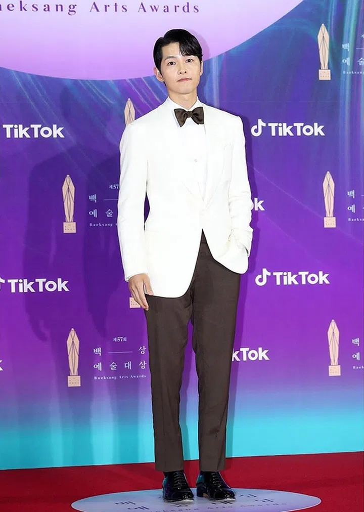 《Vincenzo》才刚播完,宋仲基就凭借剧中精湛的演技入围百想最佳男演员。当晚他以Ralph Lauren Purple Label绅士造型登场,白+褐的组合,格外清新亮眼!