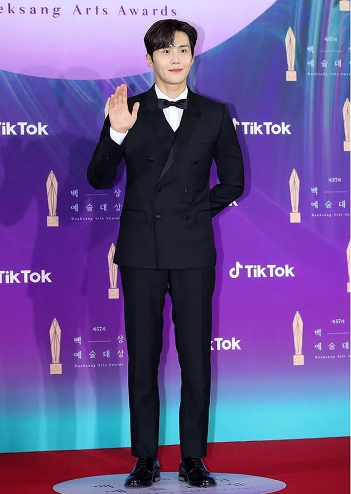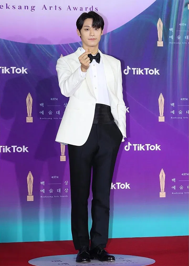 因在韩剧《德鲁纳酒店》饰演年轻帅气的将军,并守护张满月(IU饰)一辈子而被“发掘”的新晋男演员李到晛,以一袭Lord & Tailor黑白配西装现身百想。他更凭《18 Again》,拿下最佳新演员奖!