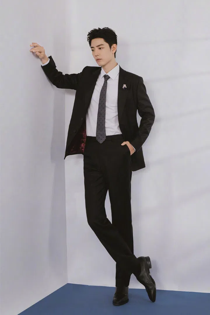 当晚获颁“微博King”的肖战(他可是新一代古装男神),以一袭Gucci黑西装搭配白衬衫及圆点领带,穿出霸道总裁范!