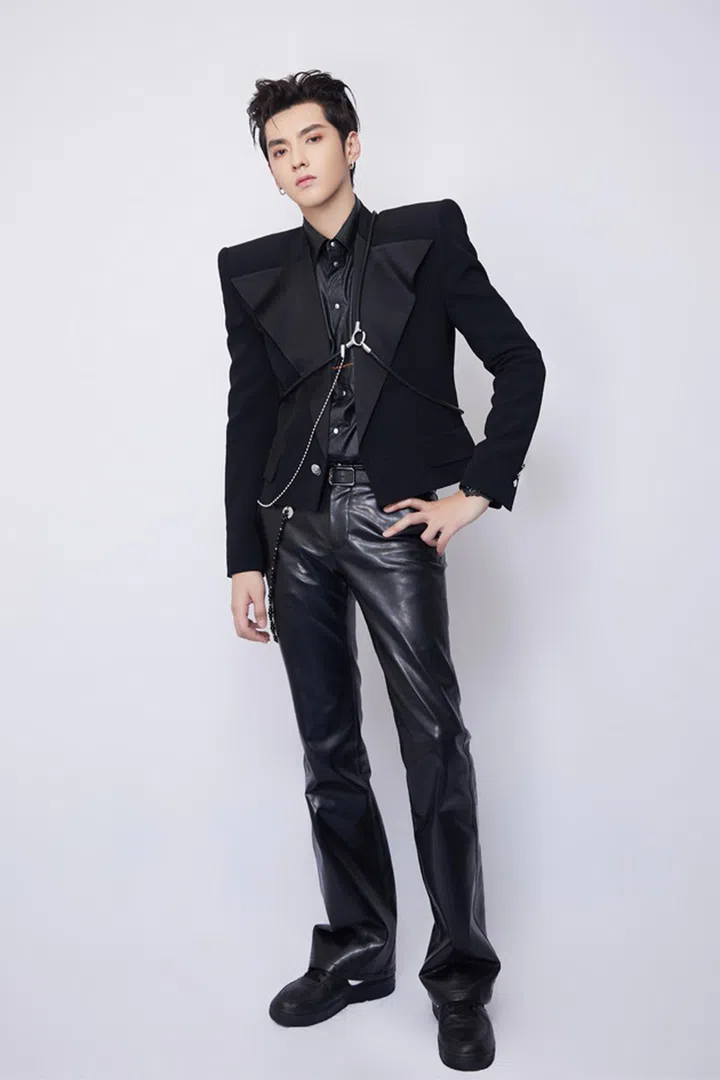 潮男吴亦凡身穿Balmain垫肩西装外套及皮裤亮相微博之夜,穿出了超有态度的街头绅士范!