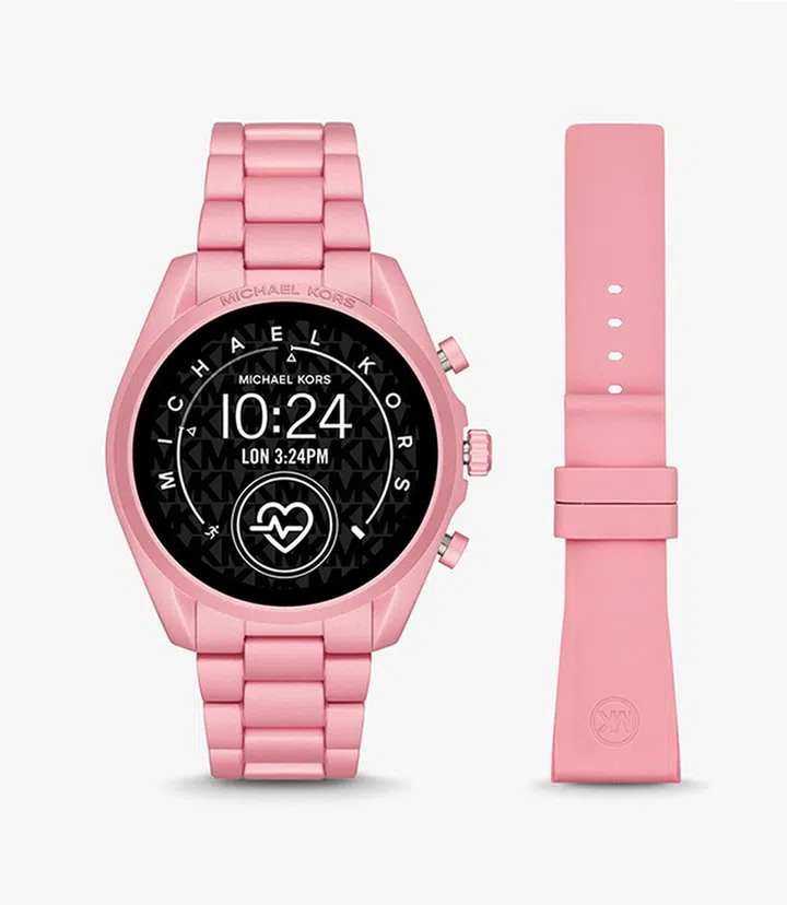 这款blush-tone的铝质智慧腕表,是品牌的best-seller款式。原价$649,现在优惠价已经降低了$200。它质地轻盈,并可替换硅胶表带。44mm的大表壳满足喜爱大表的女性需要,各种社交媒体通知,短信及邮件提示,还有支付功能及健康、运动功能等,完全满足都市女性每日的生活需求。