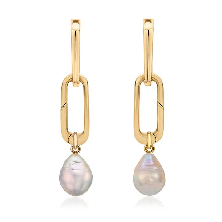 Monica Vinader的首饰还有一大好处就是单品混搭方式极为灵活。若已有它家的饰品,说不定只需添加珍珠吊坠就能打造新款配饰。比如这款设计就是Alta Capture Charm Earrings(价格$260),搭配两颗巴洛克珍珠吊坠(价格$145)组成。
