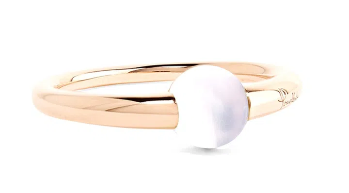 来自意大利珠宝品牌Pomellato的M'ama non M'ama戒指,设计理念旨在表达佩戴者的情感。月光石象征着成长与力量,并有使人平静,增强直觉的灵性。