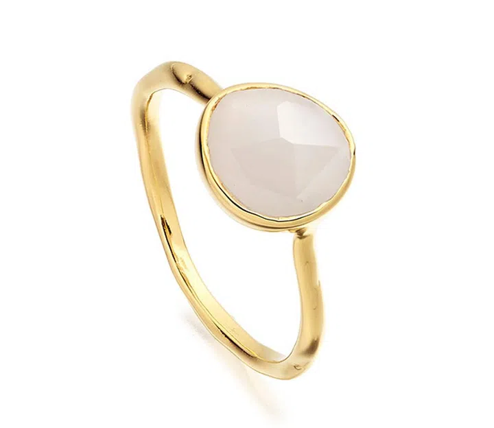 Monica Vinader拥有非常丰富的半宝石首饰选择,这款Siren Stacking Ring采用天然月光石,结合可持续的回收金及银质打造,既美观适合叠戴,同时又兼顾环保。