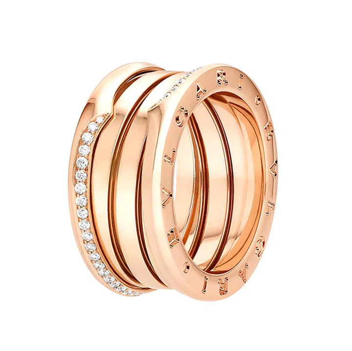 Bvlgari B.zero1系列的三环设计,从著名的罗马斗兽场撷取灵感,将其建筑线条注入戒指的廓形设计。而今年的新款设计,以边缘镶钻勾勒出流线美感,寓意机遇、个人成长及积极改变,同时对即将到来的一切满怀信心。