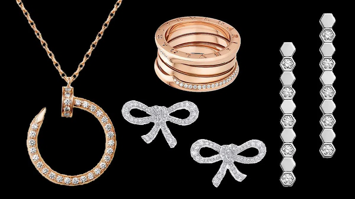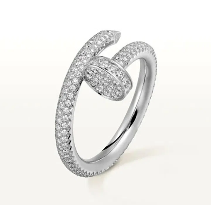 Juste un Clou也有不少钻石缀饰的“钉子”首饰。该系列是Cartier将五金零件幻化为珠宝的经典之作,品牌通过把平凡物件进行升华,彰显设计的巧思和珠宝的魅力及珍贵。