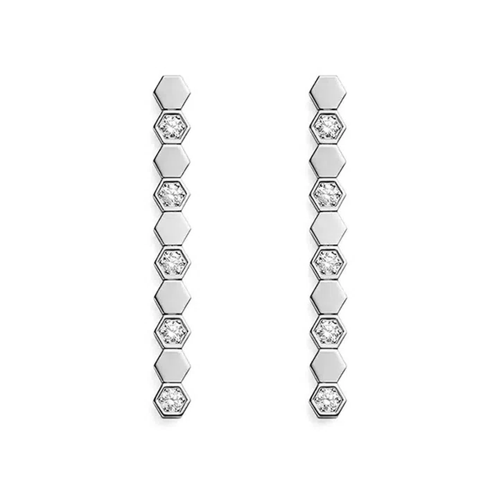 被誉为宝石之王的钻石,并象征着永恒。传说中钻石会带给人类力量,印度人更相信能带来财富和幸运。上方这对耳坠采用错综排列的密镶美钻,交织出优雅的几何美感,代表人与人之间相互牵系的珍贵缘份。