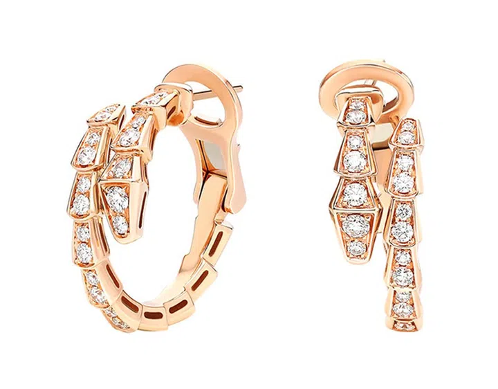 品牌的Serpenti Viper系列,采用前卫现代的设计手法勾勒出灵蛇的神秘身姿。装饰在耳垂上,给人精致又迷人的魅惑感。