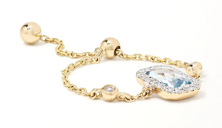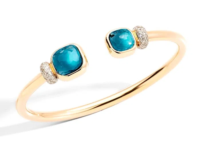 这款来自Pomellato的开口式手镯,将伦敦蓝托帕石与钻石相结合,为你营造星辰大海般的梦幻感。同时其不对称造型,也为经典设计注入了更多现代风格。