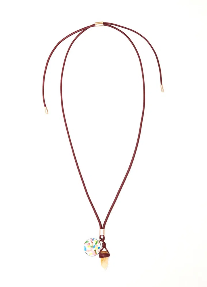 当然,你也可以从时尚品牌选择设计更加放松、个性的风格首饰。比如这款Chloe皮革项链,就从宝石本身的能量与特性撷取灵感,用来装点各种简约大衬衫或者波西米亚风长裙都很百搭。