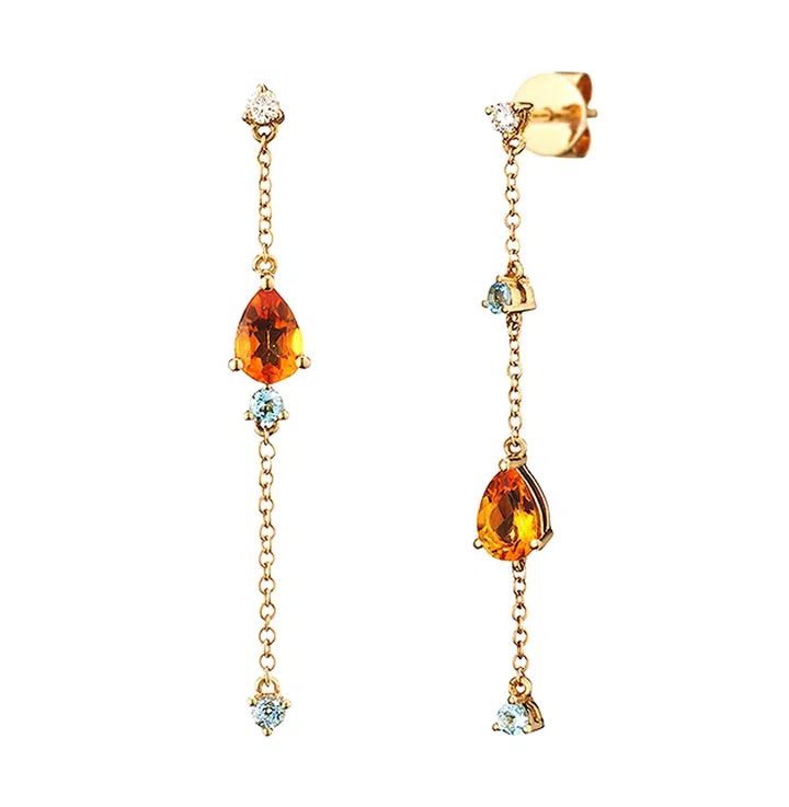古希腊人认为拓帕石能赋予人力量;14至17世纪的欧洲人则认为它能打破咒语、还能驱除愤怒情绪;人们甚至还认为拓帕石具有疗愈功效。这款造型灵动的Nanis耳坠,营造出“雨中漫舞”的优雅意境,设计浪漫又适合日常佩戴。