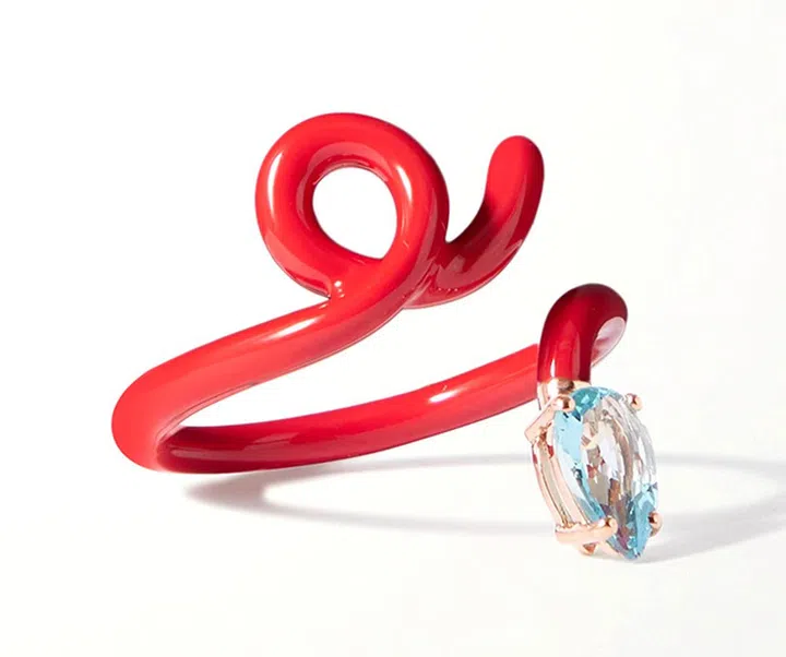 在8月诞生石首饰 #橄榄石中,我们也曾为大家介绍过BEA BONGIASCA的抽象设计戒指。这款戒指出自品牌You're So Vine系列,有趣的线条在你的手指上蜿蜒,造型活泼又有艺术感。