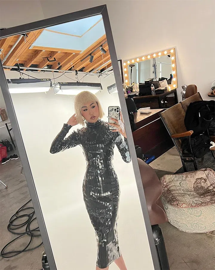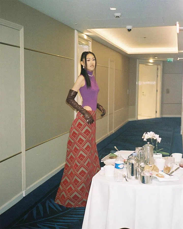 另外Jaime出席#BOF500 gala,穿着Rick Owens 2022春夏系列长裙。不搭配外套单穿,展现出她修长的身材线条。胸前的cut-out设计,也利落、有型地展现出骨感女人的时尚性感魅力。