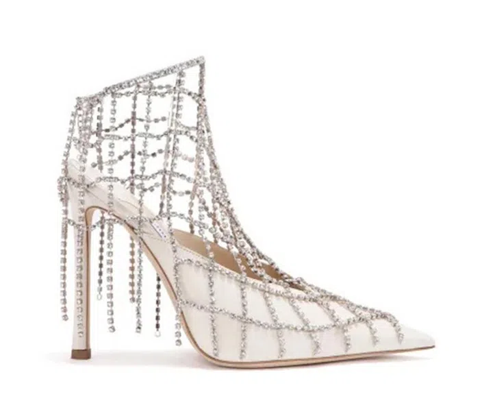 由将近2000颗水晶串成格纹链条的设计绝对吸睛!穿上这双Jimmy Choo Scotty高跟鞋,水晶“网”罩着脚踝的廓形,为整体造型添加奢华的自信美。