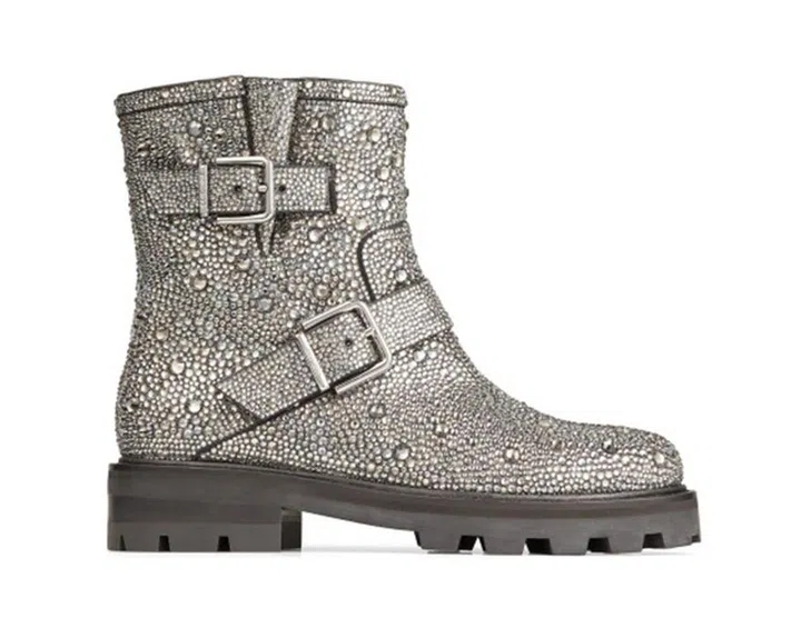 街头风造就了短靴风潮,华丽的连身裙搭配有个性的短靴以经不是什么新鲜事。Jimmy Choo的 Youth II短靴以意大利无烟煤绒面革制成,饰以通体烫钻,酷炫个性设计与魅力水钻互相呼应,展现实用与浮夸的完美平衡。