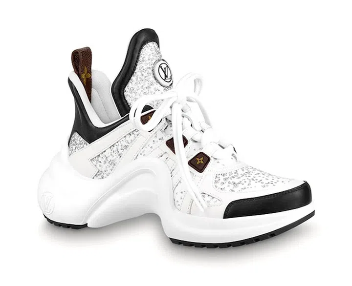 高跟鞋不是你的style?Louis Vuitton标志性款式运动鞋推出亮片设计,超夸张的波浪鞋底仍然让你“高”人一等,迷人的亮片随着灯光的照耀闪烁着,让这款鞋子不失女性的柔美气质。