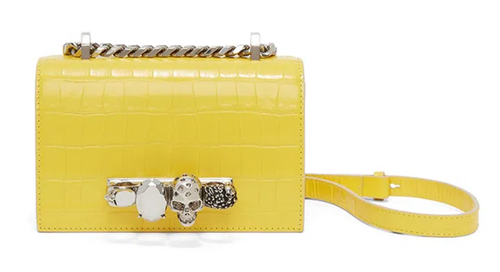 时常散发暗黑神秘气息的Alecander McQueen手袋,这次配上轻快、欢乐的黄色调,强烈的“反差萌”给人新鲜感受。