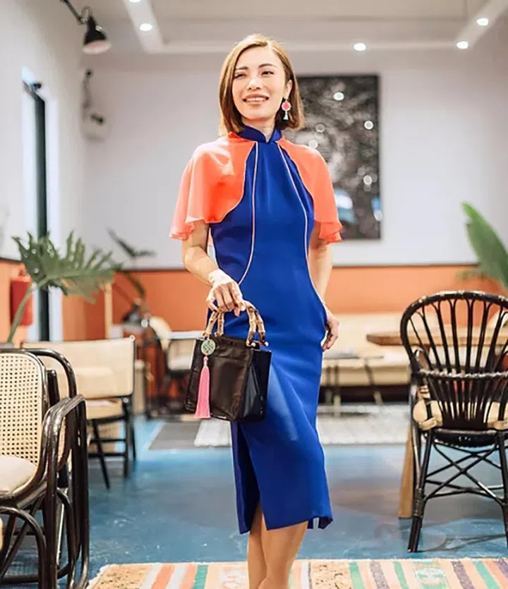 Paopao推出的“妙”旗袍设计着重在本地女生非常重视的versatility。披肩元素采用可拆卸式设计,方便不同场合的需求进行变化。艳丽的蓝色散发着高雅的气态,再以橘色的饰边点缀,抢眼的对比让人看了惊喜连连。