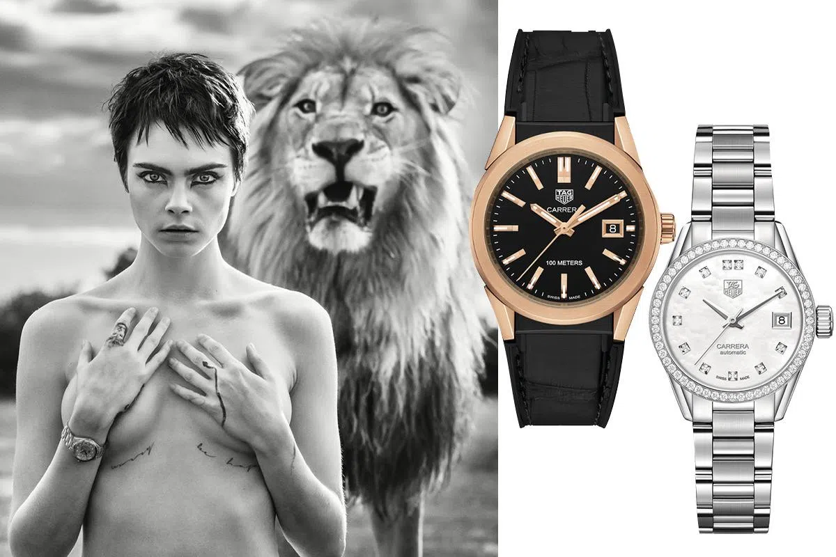 英国演员及模特Cara Delevingne为瑞士表牌TAG Heuer飞赴南非拍摄最新“Don’t Crack Under Pressure”广告大片,并由英国著名野生动物摄影师David Yarrow掌镜。