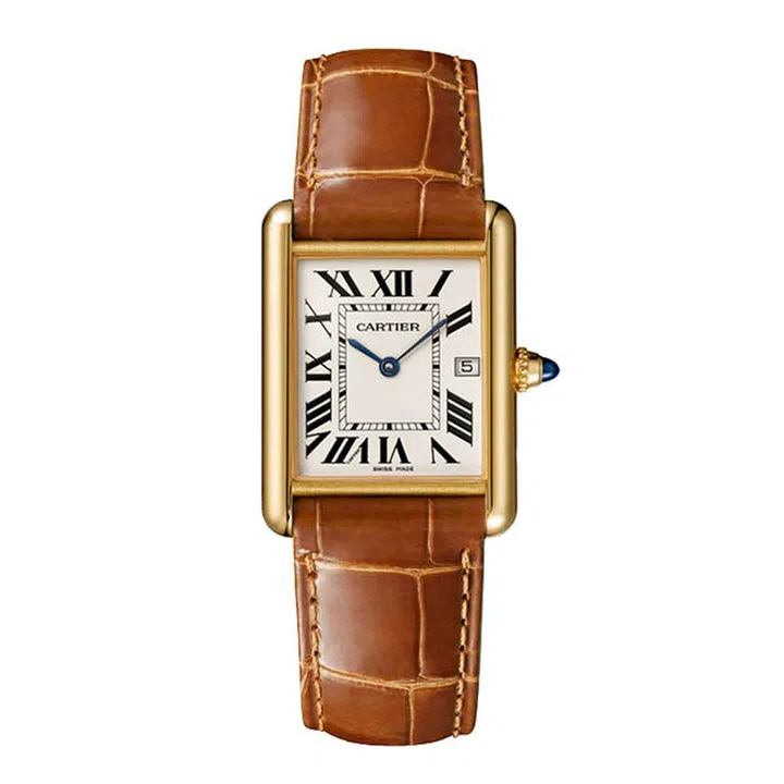 CARTIER Tank Louis Cartier搭载石英机芯、33.7 x 25.5mm 18K金表壳、皮革表带大型腕表 $13,500