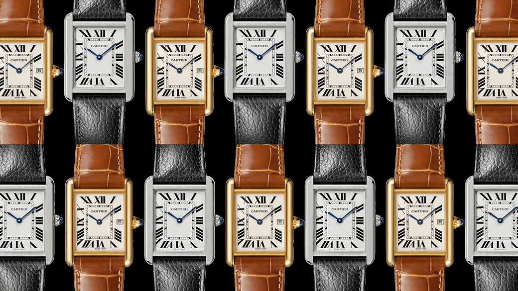 1917年诞生的Tank腕表,也被视为装饰艺术风格中最具代表性的工业设计作品。从名字不难猜出,Tank腕表确实和坦克有关联。Louis-François Cartier自在战场上屡建奇功的Renault FT-17坦克俯视图得到设计线条:长方形表壳形似车身,两条垂直表耳犹如坦克履带。系列大部分腕表以罗马数字作时标,搭标志性Chemin de fer轨道式分钟刻度外加完美比例和优雅气质,无论男女都为之吸引。