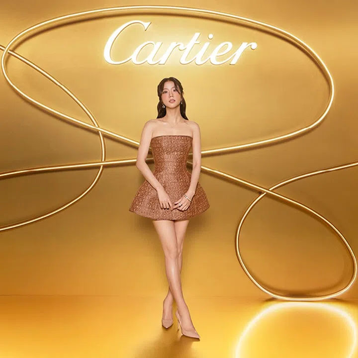 7月10日晚于Marina Bay Cruise Centre举行的庆祝活动上,品牌全球大使Jisoo也惊喜亮相,身穿GCDS 2024春夏系列迷你裙礼服搭配Cartier Trinity系列首饰,造型俏皮又闪耀。