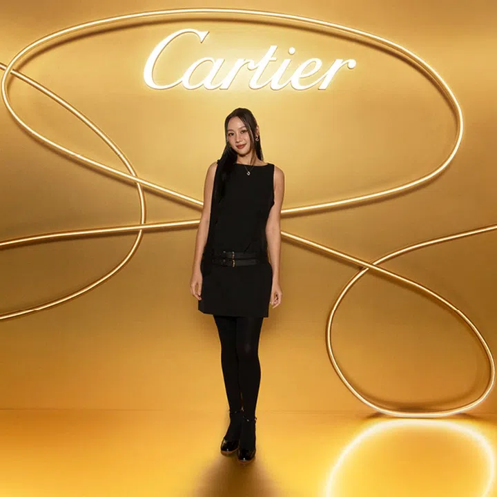 本地艺人黄思恬也是Cartier活动的常客,这次她所穿的这款黑白“花朵裙”,应该是来自罗马尼亚品牌Ana Radu。同时搭配了Cartier Trinity首饰以及品牌的Baignoire腕表。