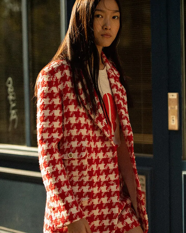 Maje推出的农历新年限定系列,用经典服饰演绎了老虎的刚阳之美,并带来颜色鲜艳的粗花呢服装及修身闪亮的连衣裙等,为新春佳节营造喜庆氛围。特别推荐:比如上图法籍华裔模特陈瑜所演绎的这款红色连衣裙。