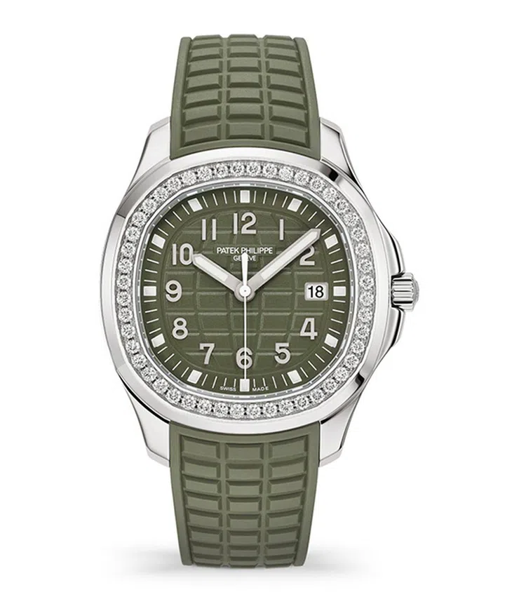Patek Philippe今年推出的Aquanaut Luce(意大利语“光芒”之意)女表新作,将表壳直径增大到38.8mm。同时,腕表搭配全新一体式衔接复合材质表带,再结合璀璨钻石、棋盘格纹浮雕图案及同色系表带,将运动风与华丽感完美相融。
