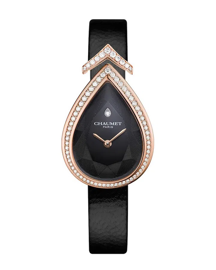 这款来自Chaumet的Joséphine Aigrette镶钻玫瑰金腕表,采用了约瑟芬皇后心爱的梨形轮廓,最大特色在于其V形aigrette设计,及表盘上装饰的“错觉画法”(trompe-l’oeil)时标。不仅宋慧乔在《现在正在分手中》有佩戴,申敏儿在《海岸村恰恰恰》中也佩戴了一款白金腕表。