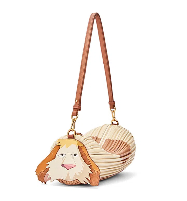 继“Totoro”及“Spirited Away”联名系列后,Loewe今年推出与Studio Ghibli合作的第三个联名系列:Howl’s Moving Castle(2004年动画),同时这也是该系列合作的最终章。上图这款既可以扣在手腕上当“手链袋”又可以肩背的Bracelet pouch,装饰的就是动画中那只棕白相间的小狗Heen (ヒン , Hin) 。