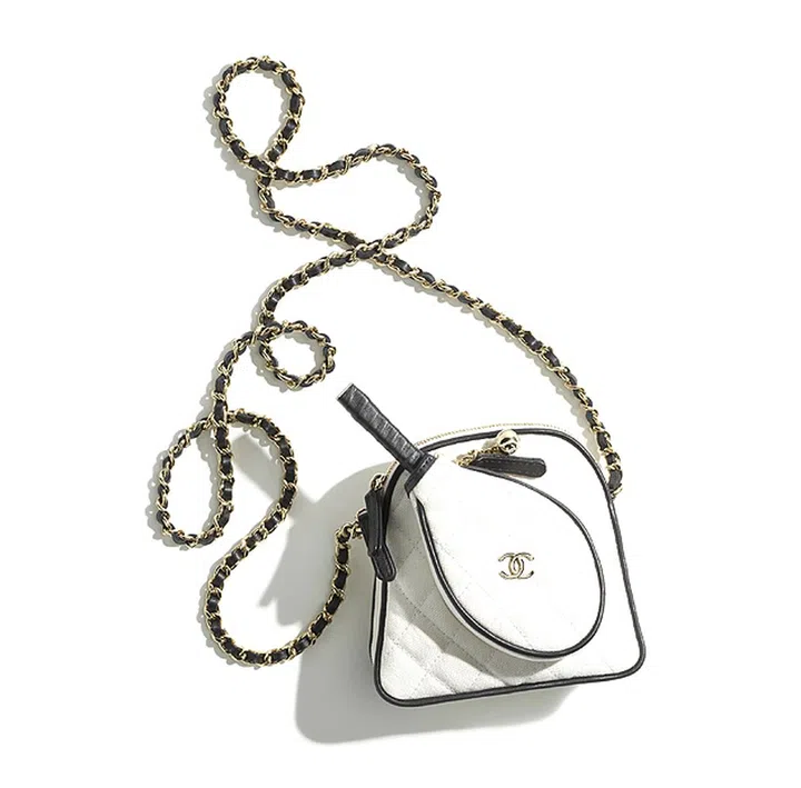 这款可爱链袋来自品牌的早春系列,外部装饰看似一款迷你网球拍,其实拉开拉链后却是一款精美手持镜。对于随时随地需要补妆或检查妆容的女人,镜子可能会是手机前置镜头不能取代的必备品。