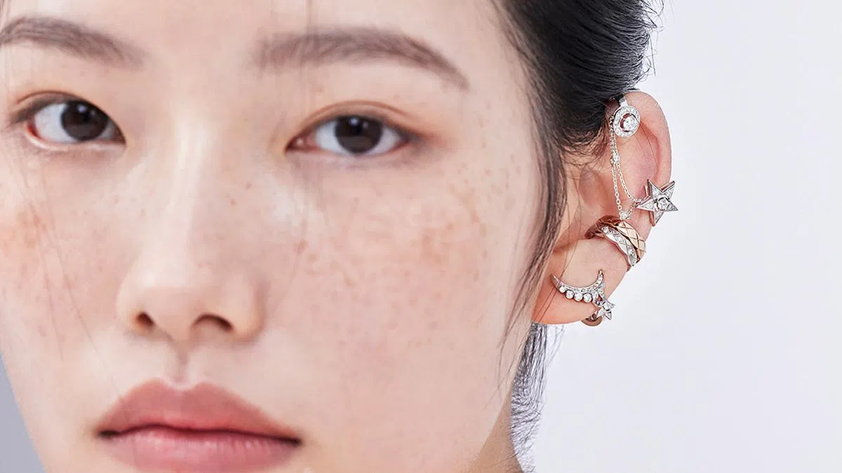 (From top) CHANEL Comète 1932镶钻18K白金耳扣、Coco Crush 18K米金耳扣及镶钻18K白金耳扣、Lune de Chanel镶钻18K白金耳夹
