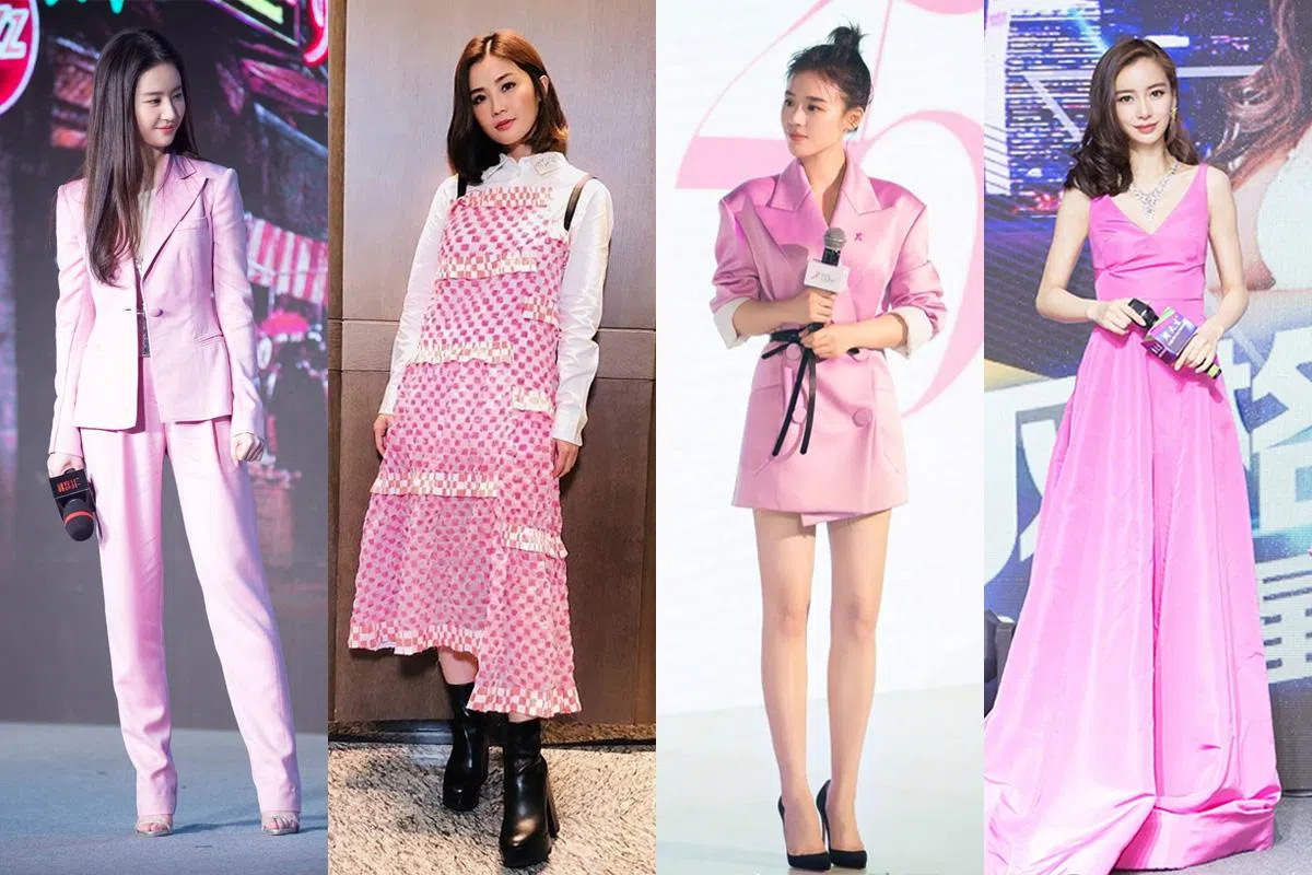 谁说粉红色只能柔美?看Angelababy、阿Sa(蔡卓妍)、马思纯、刘亦菲及赵薇最近演绎截然不同风格的粉红时尚。