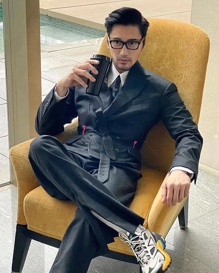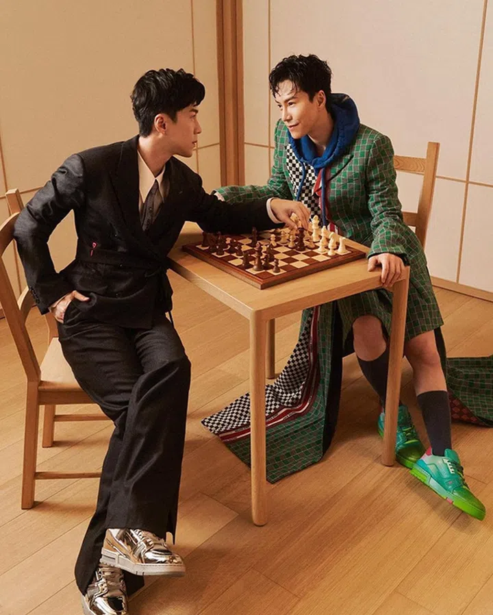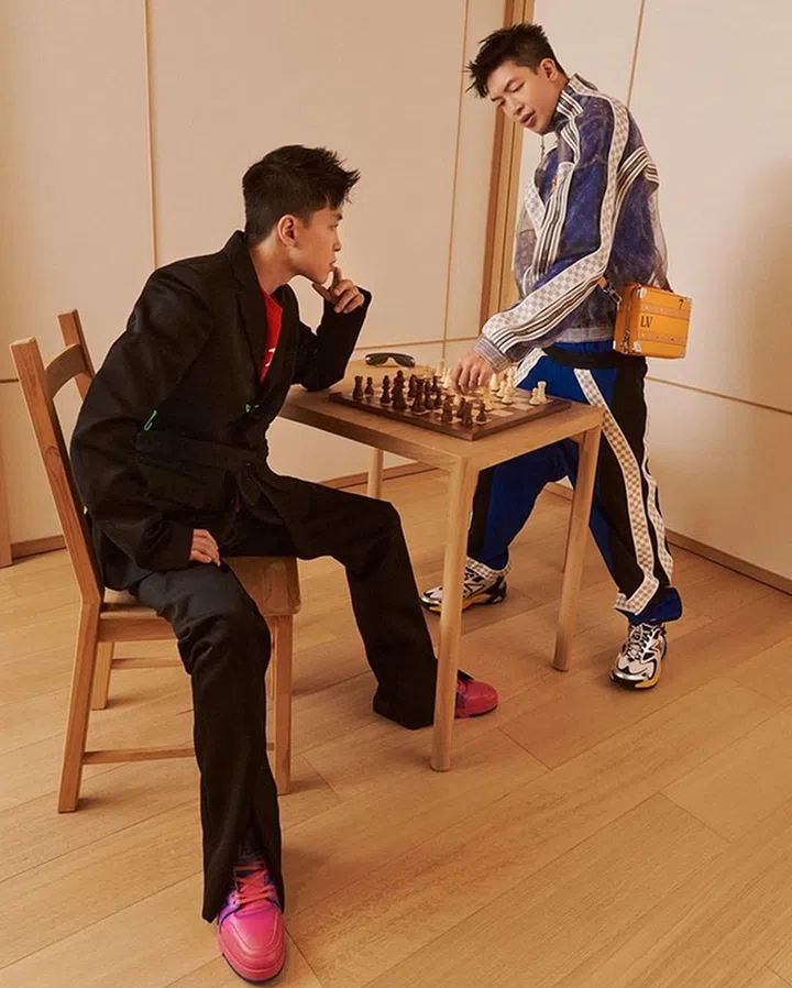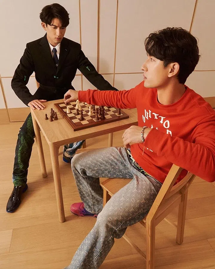 王冠逸近期为本地贺岁电影《团圆饭》进行宣传工作,并将在本地过春节。早前,他就在社交媒体发布了一张有趣的照片——两位身穿Louis Vuitton春夏2022男装系列的王冠逸在对弈。左边的王冠逸正经帅气,以正经的黑色西装搭配银色运动鞋,穿出未来感;右边的王冠逸则以大胆的撞色花纹大衣搭配连帽衫、短裤和长袜,演绎出街头潮范。