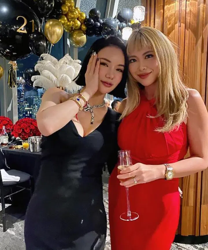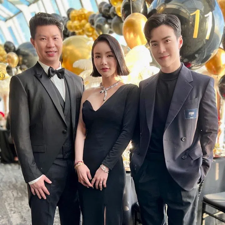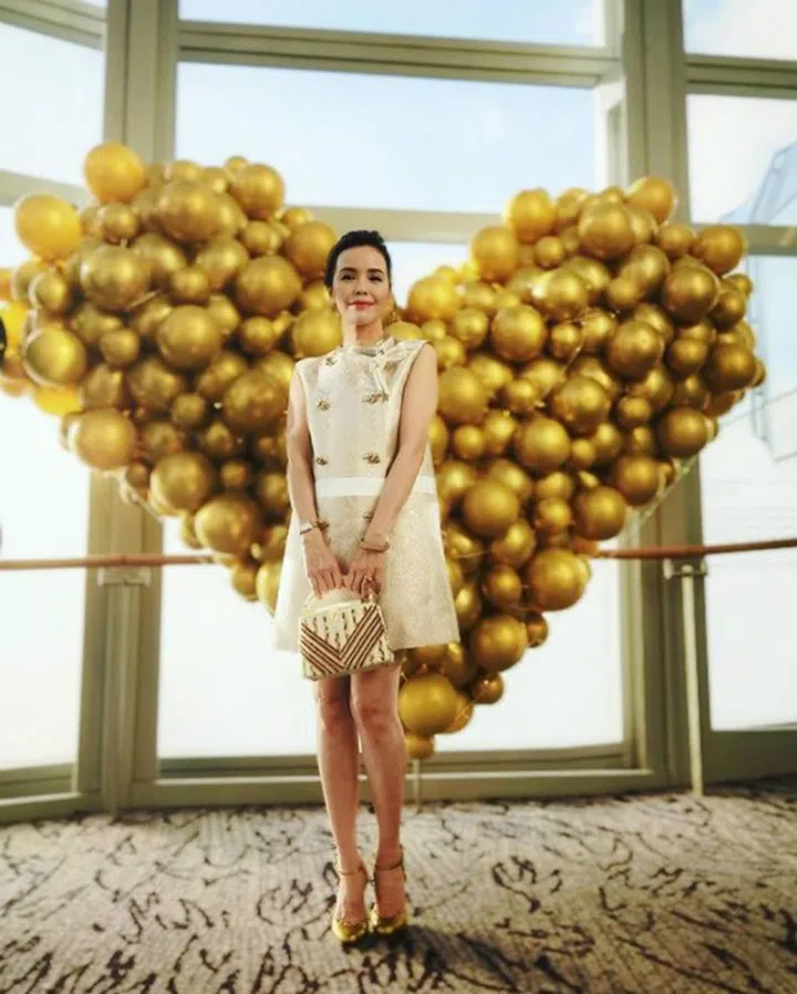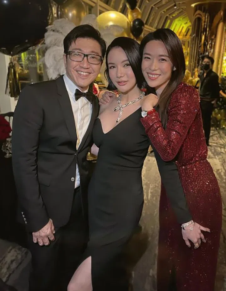 阿姐郑惠玉也是这场豪门婚礼的宾客之一。她以一身香槟金色的穿搭呼应婚礼的奢华主题,短款连身裙来自Louis Vuitton,配搭Bvlgari腕表配饰,散发成熟女性的淡雅韵味。