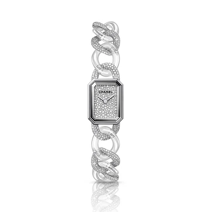Première系列最惊喜新款,当数这枚采用蓝宝石与白金打造,并镶嵌钻石的“透视腕表”。其设计质感通透,极具反差美,又展现出迷人女性特质。