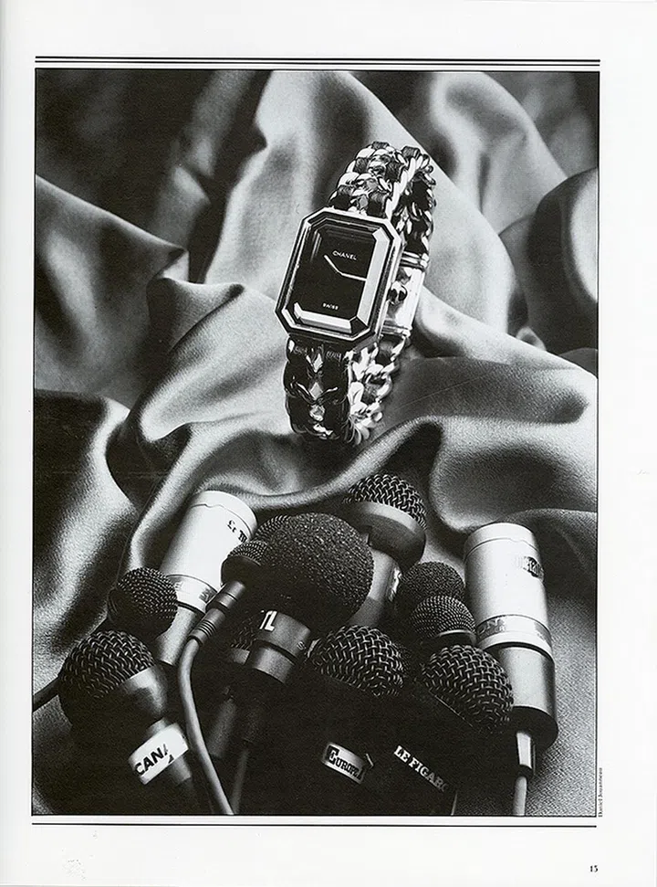 1987年,当时的品牌艺术总监Jacques Helleu果敢将品牌带入制表界,力求打造一款可成为隽永灵感之源的强大设计 。这位18岁加入品牌,以负责“品味相关之事”为使命的男士,作为传奇品牌的“眼睛”在近半世纪的时间里,一直担任着品牌香氛、美容品及腕表与珠宝的总监,直至他2007年离世。在其构思下,Première腕表应运而生——八角形几何感表壳灵感来自N°5香水瓶瓶盖,灵活的皮革及链条编织表带则一如诞生于1980年代的经典Flap手袋肩带。